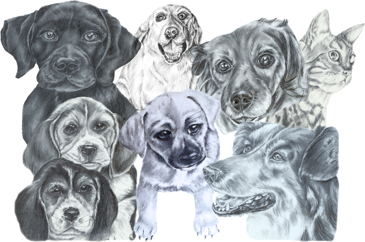 Our gallery features images of recent portraits that I’ve drawn. Each portrait is very special to me because it represents the life and character of each of these four-legged, furry souls. I include each finished portrait in the gallery once it has been shipped and delivered.